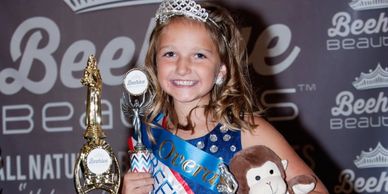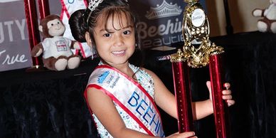 Every contestant receives a tiara, sash, trophy and prize awarded to them on stage!